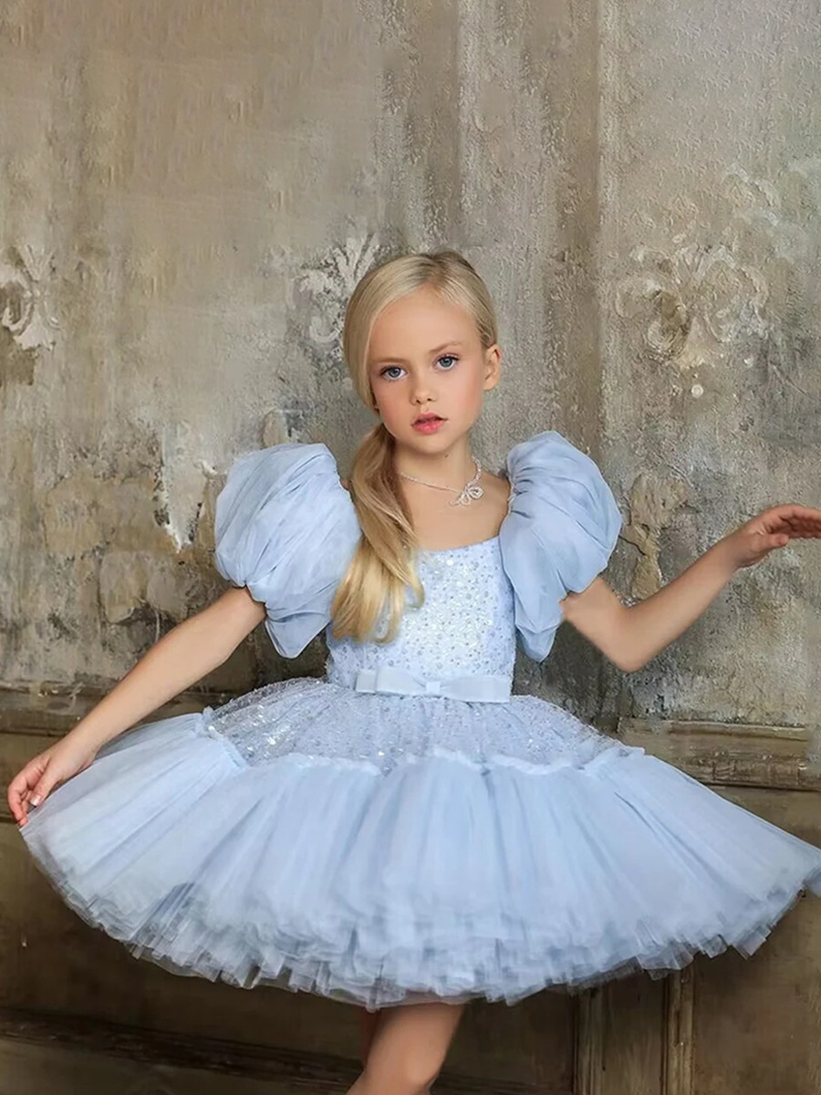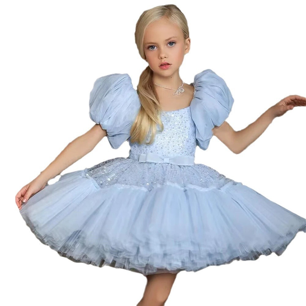 2024人気特価子供用スパンコールレースドレス女子半袖ショートチュチュスカートリボンプリンセススカートドレス【即日配送多数あり!】