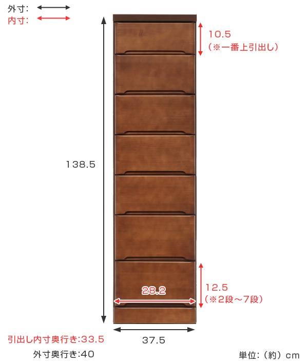 - 2024春夏の新作スリムチェスト 7段 すき間収納 引き出し 木製 幅37.5cm タンス チェスト ランドリーチェスト 整理タンス 完成品 収納 隙間 すきま 整理 衣類収納正規品保証