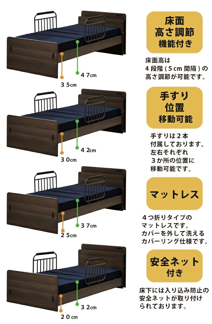 電動ベッド 2モーター マット付き サイドガード2個付き シングルサイズ シングルベッド 介護ベッド正規品通販店