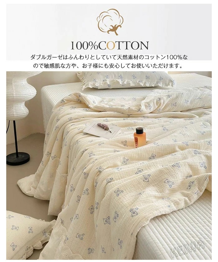 - 本物保証!2重ガーゼ 夏布団 綿100% 肌掛け布団 ダブル 掛け布団 肌布団 夏掛け 夏 布団 ガーゼケット 掛けふとん レース付き 柔らか 吸湿 通気 抗菌防臭 肌に優しい 洗える ダブルガーゼ 布団 春が期間特別限定