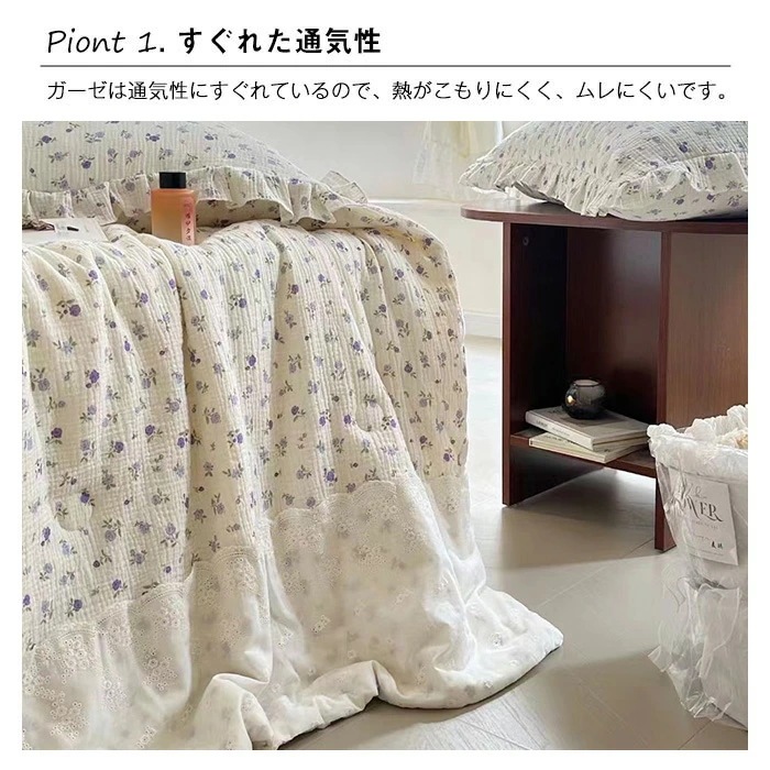 2重ガーゼ 夏布団 綿100% 肌掛け布団 ダブル 掛け布団 肌布団 夏掛け 夏 布団 ガーゼケット 掛けふとん レース付き 柔らか 吸湿 通気 抗菌防臭 肌に優しい 洗える ダブルガーゼ 布団 春優雅な品位を示す