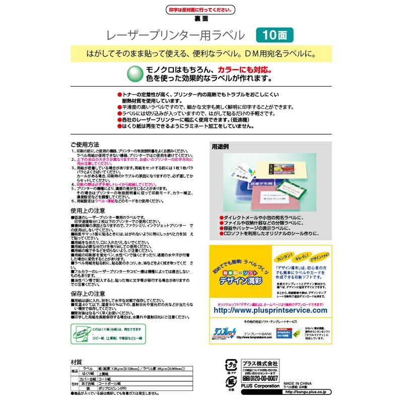 肌触りがいいプラス(PLUS)レーザーラベル 紙製 A4 86.4×50.8 10面 500シート入 LT-501S【送料無料】 45-311店舗より激安!
